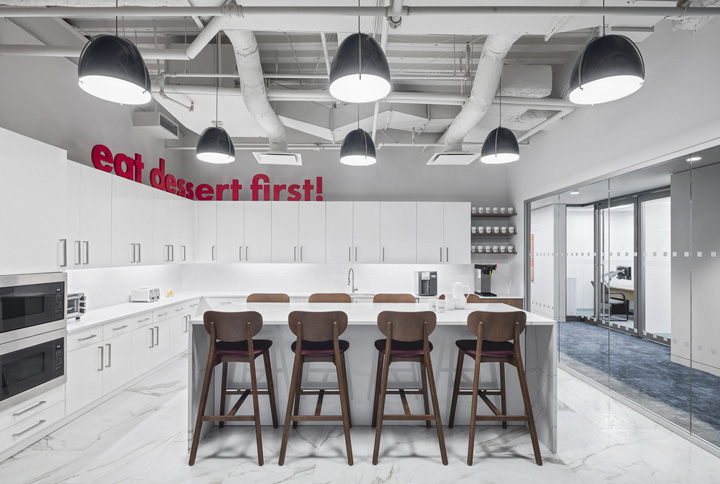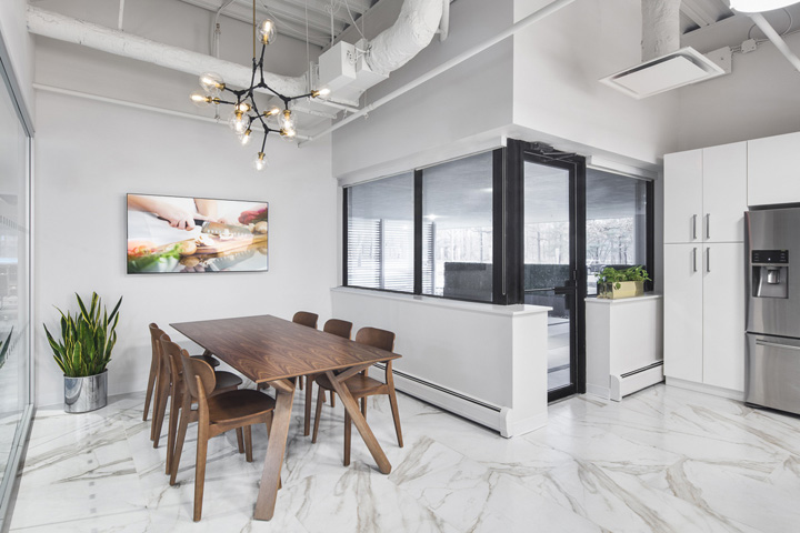 明亮的光照對(duì)創(chuàng)建正能量的環(huán)境非常重要。大量的自然光通過(guò)玻璃窗明亮了咖啡區(qū)區(qū)域,為員工和客戶提供了一個(gè)舒適的環(huán)境。為了平衡空間環(huán)境,設(shè)計(jì)團(tuán)隊(duì)簡(jiǎn)化人工照明強(qiáng)調(diào)空間特色。簡(jiǎn)約凝練的線條更加突顯了材質(zhì)肌理的美感,創(chuàng)建了一個(gè)現(xiàn)代時(shí)尚的工作空間。有著家居氛圍的工作休息區(qū)設(shè)計(jì),為工作交流提供了一個(gè)更加私密的親和空間。