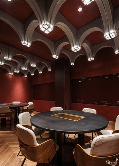 標(biāo)簽: 律師辦公室裝修 律師事務(wù)所裝修設(shè)計(jì) READ MORE商場(chǎng)內(nèi)部美食林立,想要脫穎而出除了味道之外,亮眼的店面裝飾也必不可少。今天鄭州火鍋店裝修公司宏鈺堂裝飾小編為您推薦的朱雀特色主題火鍋店裝修設(shè)計(jì)案例就是一家400平方的商場(chǎng)店。沒有可以沿襲的傳統(tǒng),設(shè)計(jì)師肆意揮灑創(chuàng)意,為大家?guī)砹艘粓?chǎng)視覺、味覺、聽覺、觸覺享受盛宴。“朱雀”火鍋店入口接待區(qū)延續(xù)山脈的流動(dòng)形態(tài),燈光與體塊的互動(dòng)猶如清晨山間云霧?;【€與體塊的組合奠定了剛?cè)岵?jì)的餐飲空間特色,從入口處即可感