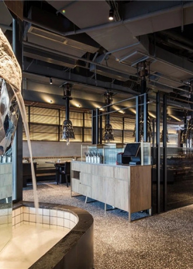 標簽: 工業(yè)風(fēng)廠房裝修案例 辦公樓改造裝修設(shè)計 READ MORE烤肉店流派極多,韓式燒烤則憑借多項優(yōu)勢在市場上獨領(lǐng)風(fēng)騷。今天要為大家推薦的漢陽館烤肉大師是一家不用自己動手烤肉的高級特色烤肉餐廳,下面就跟隨鄭州餐廳裝修公司宏鈺堂裝飾小編一起來欣賞吧!漢陽館入門區(qū)域用柔和的燈光制造溫暖感去迎接每一位顧客。在弧形坡頂和上翹的屋檐外巧妙地注入小型的照明設(shè)備,去突顯黑色材質(zhì)與金屬色的高級,營造出高端大氣的就餐氛圍,且保留著順德古城的街巷阡陌的既視感。 每一格的