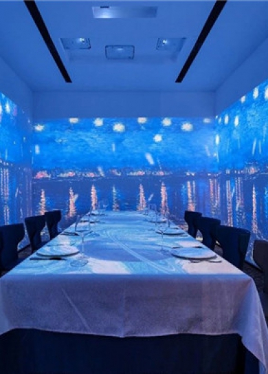 標簽: 軟件公司辦公室裝修 工業(yè)風辦公室裝修方案 極簡風辦公室裝修 READ MORE對于藝術,每個設計都有不同的解讀。在本案Young藝術餐廳裝修設計中,設計方不愿做“空中樓閣”式的設計,于是依據(jù)場景需求,進行了一場深度思考。最終成就了這樣一個基于實用,而又高于實用的可欣賞、可感知、可駐足的藝術餐廳。 餐廳入口處,采用可調色的新型材料在兩側立面規(guī)律排布,漸變色澤、動感線條,極具夢幻感。令食客自踏足餐廳第一步起,一見傾心、流連忘返。巨幅畫作引人駐足,燈光的投射令畫作呈現(xiàn)錯