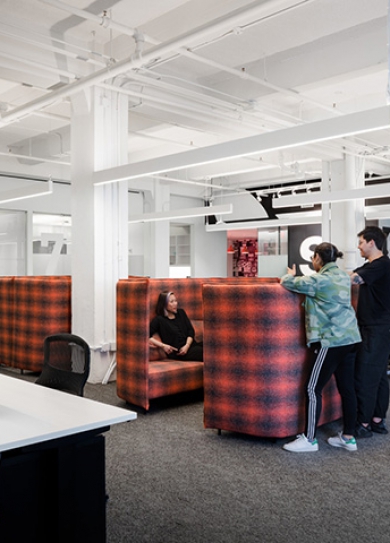 標(biāo)簽: 日式酒吧餐廳裝修設(shè)計(jì) 日式餐廳裝修方案 READ MORE沒(méi)有阿迪的運(yùn)動(dòng)青春是不完整的,阿迪達(dá)斯 (Adidas) 是德國(guó)運(yùn)動(dòng)用品制造商。本案是其位于美國(guó)紐約的辦公室,知名辦公設(shè)計(jì)團(tuán)隊(duì)打造。將紐約市一座建于1936年的兩層樓老廠房爆改成一個(gè)集辦公、發(fā)布會(huì)場(chǎng)和展示于一體的時(shí)尚空間,下面就跟隨鄭州辦公樓裝修設(shè)計(jì)公司宏鈺堂小編一起來(lái)欣賞吧!為了培養(yǎng)創(chuàng)造力和創(chuàng)新力,辦公樓設(shè)計(jì)靈感來(lái)自與品牌相關(guān)的運(yùn)動(dòng)、速度和創(chuàng)新文化。體育場(chǎng)的照明設(shè)備照亮了展廳走廊,超級(jí)夸張的室內(nèi)