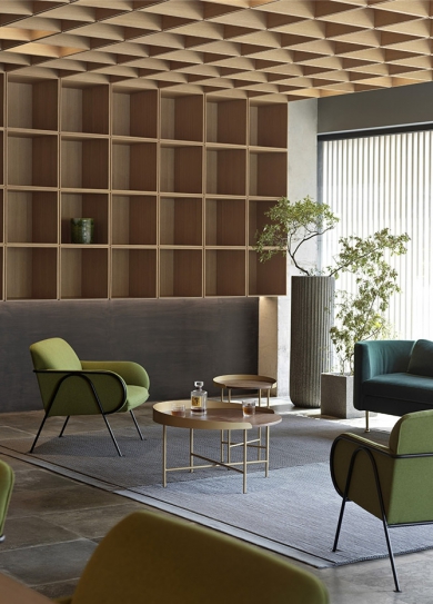 易間為中國(guó)網(wǎng)易旗下的咖啡品牌,位于網(wǎng)易北京總部大樓,室外是大樓的下沉廣場(chǎng),由于位址的開(kāi)闊性,陽(yáng)光透過(guò)大大的落地窗照射進(jìn)來(lái),即使是在寒冷的冬季,也暖洋洋的??臻g中有兩個(gè)門(mén)是可以通往其他空間的重要通道,規(guī)劃平面需留出主要通道。平面被通道分割為大大小小的矩形區(qū)域,按照功能分區(qū)。下面就跟隨鄭州餐廳裝修公司宏鈺堂裝飾小編一起來(lái)欣賞吧!Yijian is a coffee brand owned by Chi