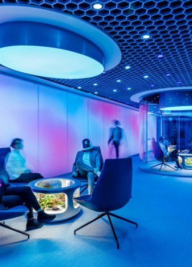 標(biāo)簽: 咖啡廳簡(jiǎn)餐裝修設(shè)計(jì)方案 鄭州咖啡簡(jiǎn)餐裝修設(shè)計(jì) READ MORE全球網(wǎng)絡(luò)的發(fā)展,總是讓我們?nèi)滩蛔』孟?,科幻電影里的?chǎng)景什么時(shí)候可以成為現(xiàn)實(shí)?帶著這一份美好的憧憬,全球網(wǎng)絡(luò)安全公司Nordea Horizon以星際科幻為主題打造自己的總部辦公室。在這處超過(guò)2,500平方米的辦公環(huán)境里,IT專家每天工作24小時(shí)致力于提高技術(shù)流程的質(zhì)量。華沙辦公室裝修設(shè)計(jì)旨在強(qiáng)化銀行作為一家專注于前沿科技技術(shù)的雇主和企業(yè)的品牌形象呈現(xiàn)。設(shè)計(jì)師提議將原來(lái)頂部的兩個(gè)樓層合并成一個(gè)雙層空