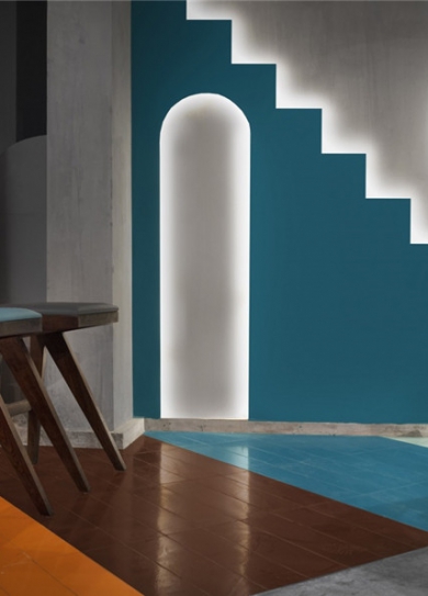 標(biāo)簽: 辦公室改造裝修案例 辦公室改造裝修效果圖 READ MORE印度The Geometrication餐廳以融合為核心設(shè)計(jì)原則,從位于印度德里(Delhi)和齋浦爾(Jaipur)的曼塔天文臺(tái)(Jantar Mantar)和獨(dú)立益智游戲——紀(jì)念碑谷中獲取設(shè)計(jì)靈感。趣味設(shè)計(jì)概念貫穿了整個(gè)空間,通過一系列線條和幾何造型創(chuàng)造出數(shù)個(gè)獨(dú)立但彼此連通的功能性空間。這些功能性空間通過拱形的門洞連接,并根據(jù)需要,在門洞處使用不同的顏色或是增加一系列額外的、純粹的幾何形狀以示