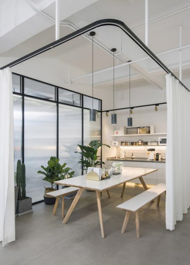 標(biāo)簽: 辦公室裝修方案 現(xiàn)代工業(yè)和東方自然共存的辦公室裝修 READ MORE十間工作室的室內(nèi)設(shè)計(jì)意在營造一種干凈、明亮、寬松的創(chuàng)意氛圍,同時(shí)兼顧空間和功能的多變及靈活性。下面鄭州辦公室裝修公司宏鈺堂裝飾就帶大家一起欣賞一下。 工作室以黑白色調(diào)為主,采用開放式天花和素混凝土地面,暗示了極簡、中性的設(shè)計(jì)哲學(xué)。室內(nèi)辦公區(qū)形成一個(gè)流動(dòng)、通透的Studio式大空間,不設(shè)任何全封閉的隔間。會(huì)議室、辦公室均采用瓦楞藝術(shù)玻璃折疊門,平時(shí)完全開敞,僅在有需要時(shí)關(guān)閉,提供視覺和聲學(xué)的私