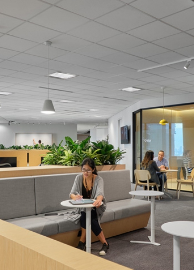 標簽: 牛排餐廳裝修設(shè)計 西餐廳設(shè)計案例 READ MORE商業(yè)管理咨詢公司Optimus SBR位于加拿大多倫多的新辦公室,通過豐富的材質(zhì)肌理塑造出一個促進協(xié)作交流、增強凝聚力的優(yōu)雅辦公空間。這個項目所面臨的挑戰(zhàn)以及辦公室裝修設(shè)計的首要目標,是要找到一種方法,讓員工有積極的參與感,與他們的工作場所和同事保持緊密聯(lián)系,盡管他們并不是每天都在這里工作。解決方案是創(chuàng)建一個促進交流和連接的開放環(huán)境,為員工提供聚會和互動的空間,并提供各種靈活的工作空間如休閑座位區(qū)