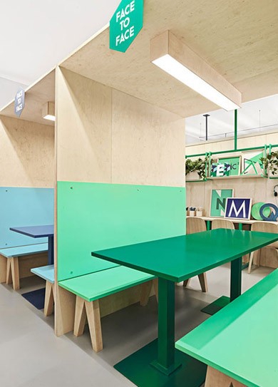 西班牙創(chuàng)意設計工作室Masquespacio在巴塞羅那為已成立15周年的英語教育品牌Acadèmia Altimira量身打造了空間與品牌設計。該培訓機構主要為青少年與年輕人提供英語教育,為此空間設計使用了明亮歡快但是不乏沉穩(wěn)的色彩與設計風格。下面就隨著鄭州專業(yè)培訓機構裝修公司宏鈺堂小編一起來欣賞吧!?空間家具與隔墻多采用膠合板設計。膠合板隔墻高度未達到天花板高度,且有推拉門配套,這是為