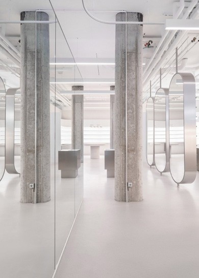 標(biāo)簽: 美發(fā)沙龍會所裝修設(shè)計 商業(yè)店面裝修案例 READ MOREBatek Architects為ZALANDO美容店打造了別具一格的室內(nèi)空間,并很快成為了受歡迎的“拍照打卡”地點。該商業(yè)空間可根據(jù)需求用作不同功能,為產(chǎn)品展示、活動開展、美容服務(wù)和視頻拍攝提供不同空間布局的可能性??勺杂蓴[放的不銹鋼立方體在劃分空間的同時也為產(chǎn)品的陳列和展示提供了完美的平臺。下面就隨著鄭州商業(yè)店面裝修公司宏鈺堂小編一起去欣賞吧!長長的展示架是由Smile Plastics公司利