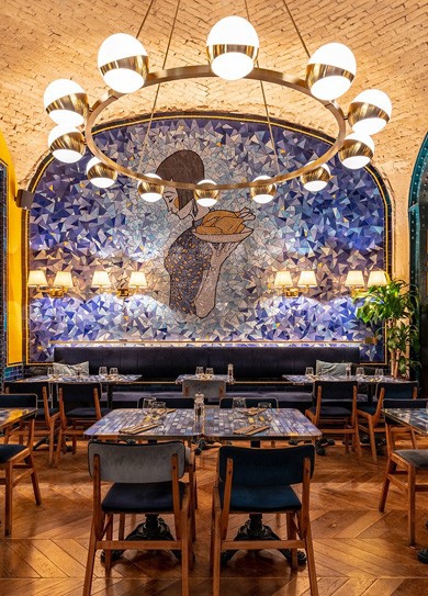 Hilda——一個以女性名字命名的燒烤餐廳,提供高品質(zhì)的農(nóng)場美食的燒烤。從命名的那一刻開始,就注定了這是一個柔美的、具有女性特質(zhì)的用餐空間。在保留原建筑結(jié)構(gòu)的基礎(chǔ)下,設(shè)計師選用波西米亞風(fēng)格的空間帶來溫暖熱情的用餐氛圍。下面就和鄭州餐廳裝修設(shè)計公司宏鈺堂小編一起來走進(jìn)這個充滿驚喜的餐飲空間吧!原有空間有大量的穹頂和裸露的原始磚墻,所以鐵質(zhì)結(jié)構(gòu)成為了定義空間的主要元素。主用餐空間采用了純手工鋪設(shè)的巨大
