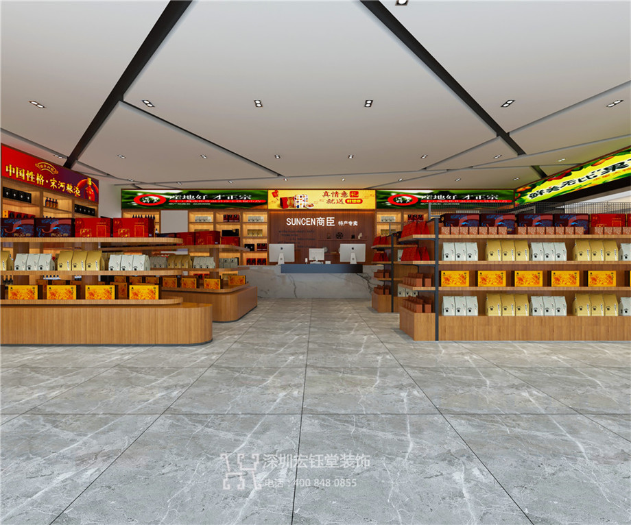 商臣特產(chǎn)正大樂(lè)城店是商臣連鎖便利店旗下首家以各色特產(chǎn)為主的專(zhuān)賣(mài)店,依托高鐵站龐大的人流量,希望帶給人們不一樣的購(gòu)物新體驗(yàn)。鄭州專(zhuān)業(yè)商業(yè)店面裝修公司宏鈺堂裝飾以精品店的概念打造整個(gè)銷(xiāo)售空間,明亮通透的全景落地玻璃將店內(nèi)形象最大限度是展示給過(guò)往客戶(hù),全木質(zhì)打造的貨架在燈光的映襯下十分溫潤(rùn),簡(jiǎn)約明快的室內(nèi)設(shè)計(jì)風(fēng)格營(yíng)造輕松怡人的購(gòu)物氛圍。